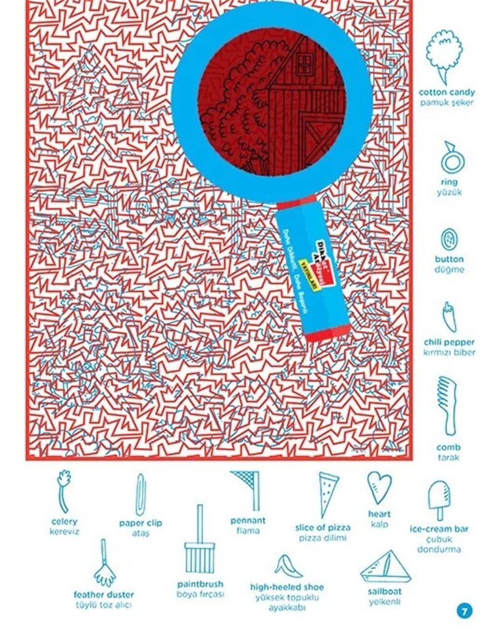 Dedektifler İçin Hidden Pictures Puzzle Yaş Grubu: 5+ Yaş Sayfa Sayısı: 96 Bu eğlenceli kitapta, gizli resimler daha da gizlenmişler! Özel büyütecinizle gizli resimleri bulmak için heyecanlı dakikalar sizleri bekliyor. Bu Kitabı Nasıl Kullanacaksınız? Resimleri ortaya çıkarmak için kırmızı kısmı kullan! Büyük resimdeki gizlenen objeleri bulmak için daha yakından bak. Tek seferde bütün resmin tamamını görmek istiyorsan, merceği gözüne yaklaştırabilirsin. Merceği gözünden ne kadar uzağa tutarsan, büyük resimde daha az alan göreceksin.