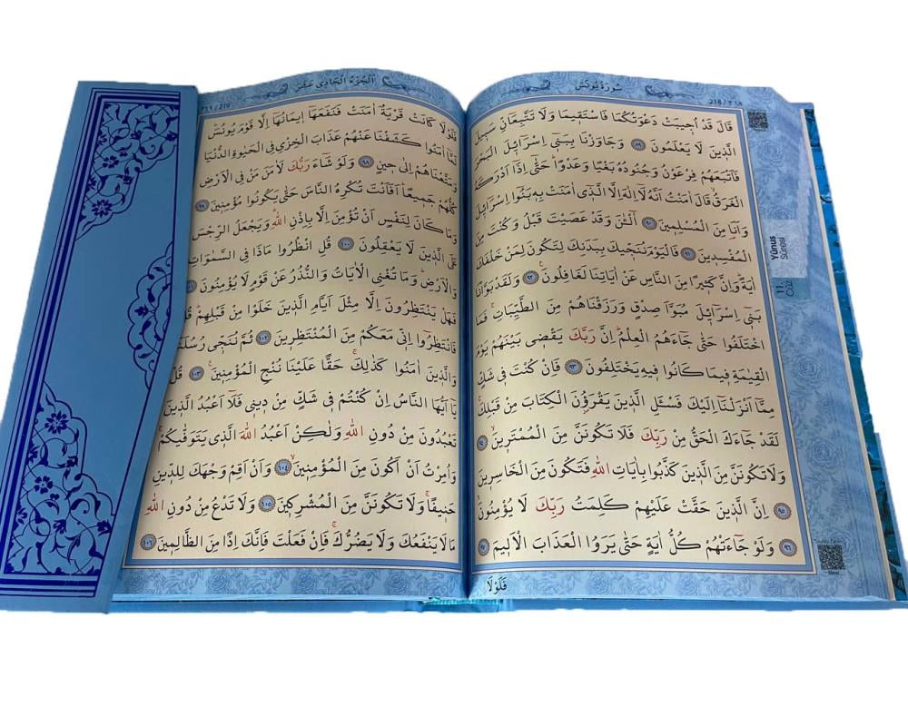 Diyanet Mühürlü Diyanet İşleri Başkanlığı Mushafları İnceleme ve Kıraat Kurulu'ndan Onaylı ve Mühürlü Hat Milyonlarca insanın Kur'ân-ı Kerim okumasını öğrendiği hattan.Okuması çok kolay bilgisayar hatlı QR Kod Teknolojisi Var Kapak Renk Mavi İç Baskı Özelliği 4 Renk Boy Orta Boy (17 cm * 24 cm) Kapak Sert Cilt Bezi Kapak İç Kağıt 1.Hamur
