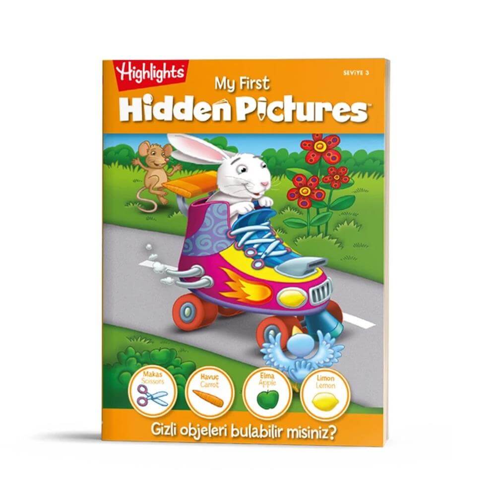 My First Hidden Pictures (Benim İlk Gizli Resimlerim) 3.Seviye - Kitap boyutu: 21,3 x 27,6 - 32 sayfa - 27 sayfa görsel ve cevap anahtarı yer almaktadır. - Kitaplar hazırlanırken kolaydan zora doğru 4 farklı seviyede hazırlanmıştır. - ‘’Highlights My First Hidden Pictures’’ gizli resimler 3-6 yaş tüm çocuklarda kullanılabilir. - My First Hidden Pictures Görsellerde ki İngilizce-Türkçe kelimeler, çocukların ve yetişkinlerin hem yabancı bir dil öğrenmesine hem de kelime farkındalığı ve kelime bilgisini arttırmaya katkı sağlayacaktır. - My First Hidden Pictures kitabındaki görseller çözümlenirken, bireyin istekliliği ve ilgisi dikkate alınarak hazırlanmıştır. - Görsellerde ki gizli objeleri araştırmak, çocukların sonuç çıkarma ve gözlemleme yeteneklerinin kuvvetlenmesine destek sağlayacak şekilde hazırlanmıştır.
