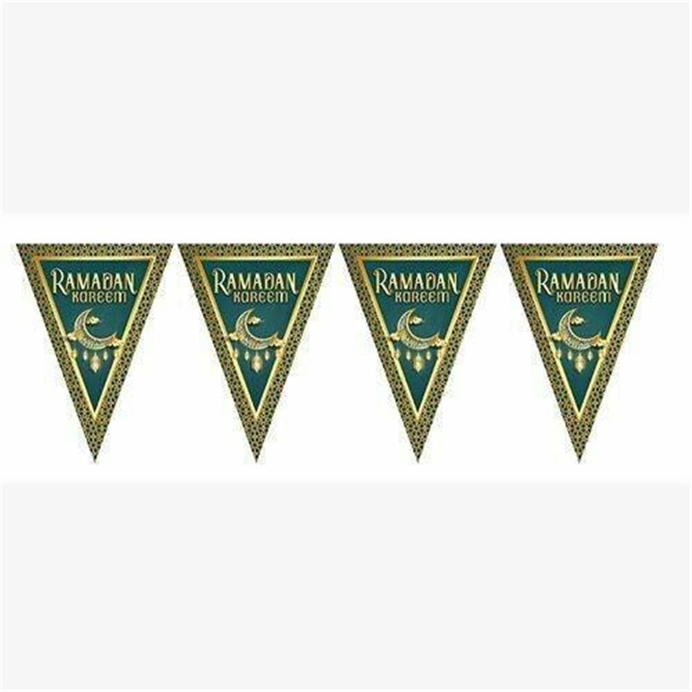 Paket içerisinde 10 adet bayraktan oluşan 1 set ''Üçgen Flama Ramadan Kareem'' vardır. Toplam ''Uzunluk 2 metre-Yükseklik 24 cm''dir. 1.sınıf kuşe kağıttan imal edilmiştir.
